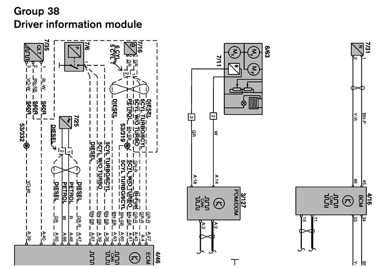 .用户您好,请登录畅易汽车维修技术支持平台——》国外汽车厂家——》富豪——》s80——》04年——》线路图——》接地38——》driver——》7\35
