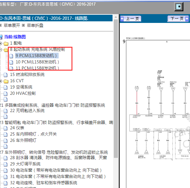 .尊敬的用户,欢迎你使用在线客服,你需要的资料在《畅易汽车维修技术支持平台》是有的,请直接登陆查询!查询方法:国内厂家 ->东风本田-思域(CIVIC)-2016-2017[ 维修手册/诊断 ] ->6控制系统DTC ->DTC故障排除 发动机电路图查询方法:国内厂家 ->东风本田-思域(CIVIC)-2016-2017[ 线路图 ] -> 8启动系统 充电系统 风扇控制 ->PCM L15B8 .