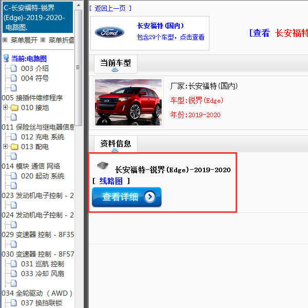 .尊敬的用户,欢迎您使用在线客服,您需要的资料已更新了全系统的电路图,请您直接进入畅易平台查询!查询方法:国内厂家 ->长安福特-锐界(Edge)-2019-2020[ 线路图 ] .