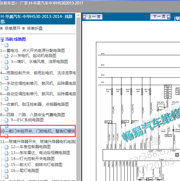 .尊敬的用户,欢迎你使用在线客服,抱歉, 该车资料里没有单独的防盗系统电路图,客服给您查找了门锁资料作为参考,你需要的资料在《畅易汽车维修技术支持平台》是有的,请直接登陆查询!查询方法:国内厂家 ->华晨汽车-中华H530-2013-2017[ 线路图 ] ->10—前门中控开关、门锁电机、警告灯模块、门微动开关电路图 ->华晨汽车-中华H530-2013-2017[ 维修手册/诊断 ] ->04车身及附件 ->第十五节 车门把手和锁闩 .