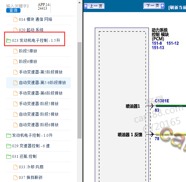.尊敬的用户,欢迎你使用在线客服,非常抱歉,没有CAF384Q26发动机的针脚资料,如需要请登录平台参考电路图!查询方法:国内厂家 -> 长安福特-福睿斯(Escort)-2019-2020[ 线路图 ]-> 023发动机电子控制-1.5升.