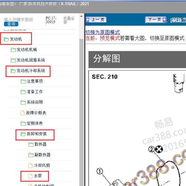 .国内厂家 -> 东风日产-奇骏(X-TRAIL)-2021[ 维修手册/诊断 ] -> 1-概述发动机电子动力传动系变速箱和传动系 -> 发动机 -> 发动机冷却系统 -> 拆卸和安装 -> 水泵.