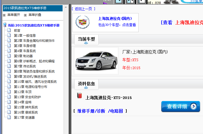 .尊敬的用户,欢迎您使用在线客服,您需要的资料已更新了全系统的维修资料,请直接登陆查询!查询方法:国内厂家 ->上海凯迪拉克-XTS-2015 -> 维修手册/诊断 /电路图 .