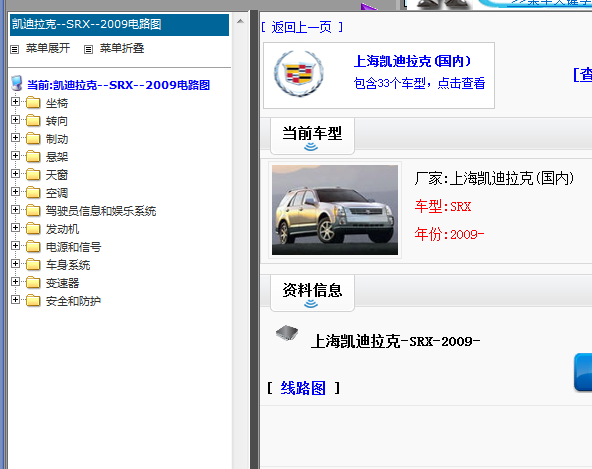 .尊敬的用户,欢迎你使用在线客服,你需要的资料在《畅易汽车维修技术支持平台》是有的,请直接登陆查询!查询方法:国内厂家 ->上海凯迪拉克-SRX-2009 -> 线路图 .