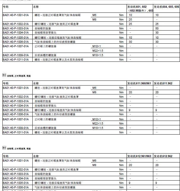 我要的是那些技术参数,比如说油底壳螺栓的拧紧力矩等。