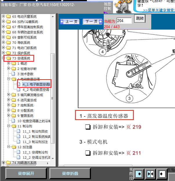 .尊敬的用户,欢迎你使用在线客服,非常抱歉,该车原件位置较少,只有蒸发器温度传感器的位置,没有其他位置的资料了,如需要参考,请直接登录平台查看,请直接登陆查询!查询方法:国内厂家 ->北京汽车-E150/E130-2012-[ 维修手册/诊断 ]->电器->73 空调系统->4 电动数显空调->4_1 电子数显空调的调节装置功能一览 .